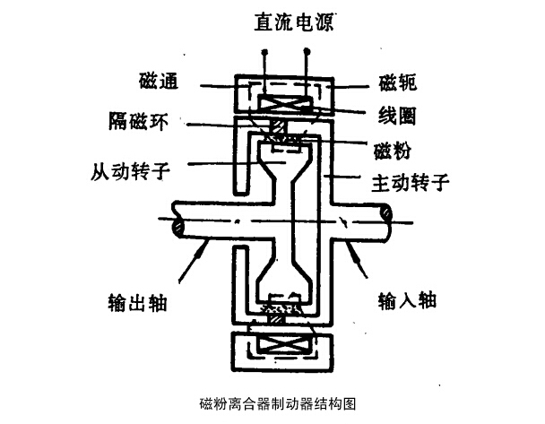 當(dāng)小規(guī)格磁粉制動(dòng)器不能匹配,而需較大磁粉制動(dòng)器時(shí),應(yīng)將其置于傳動(dòng)機(jī)構(gòu)的中部或后部,以增大工作轉(zhuǎn)矩降低滑差轉(zhuǎn)速。