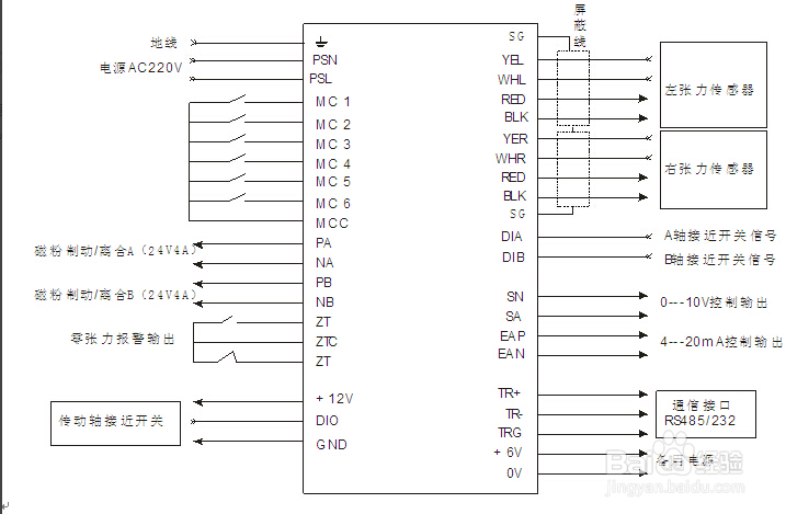 空心軸孔式磁粉制動器接線圖。因為空心軸孔式磁粉制動器具有良好的恒轉矩特性使它作為張力體系的實行部件,所以空心軸孔式磁粉制動器接線也非常簡單。