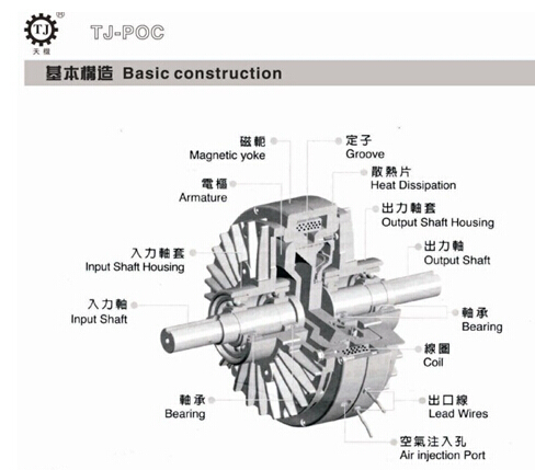 磁粉離合器是由傳動(dòng)單元(輸入軸)和從動(dòng)單元(輸出軸)合并而成。