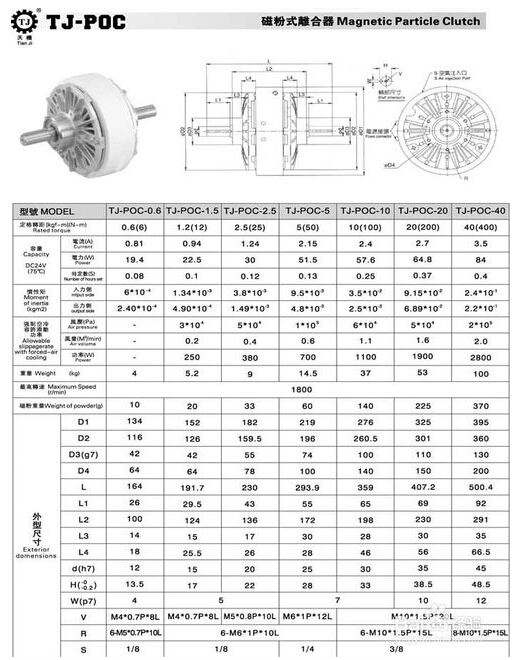 根據東莞天機傳動磁粉離合器的型號規格表,選擇適合自己使用的型號規格。
