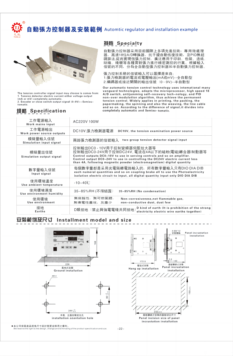全自動張力控制器廠家規格及安裝范例、尺寸如下(全自動張力控制器安裝接線圖方法)